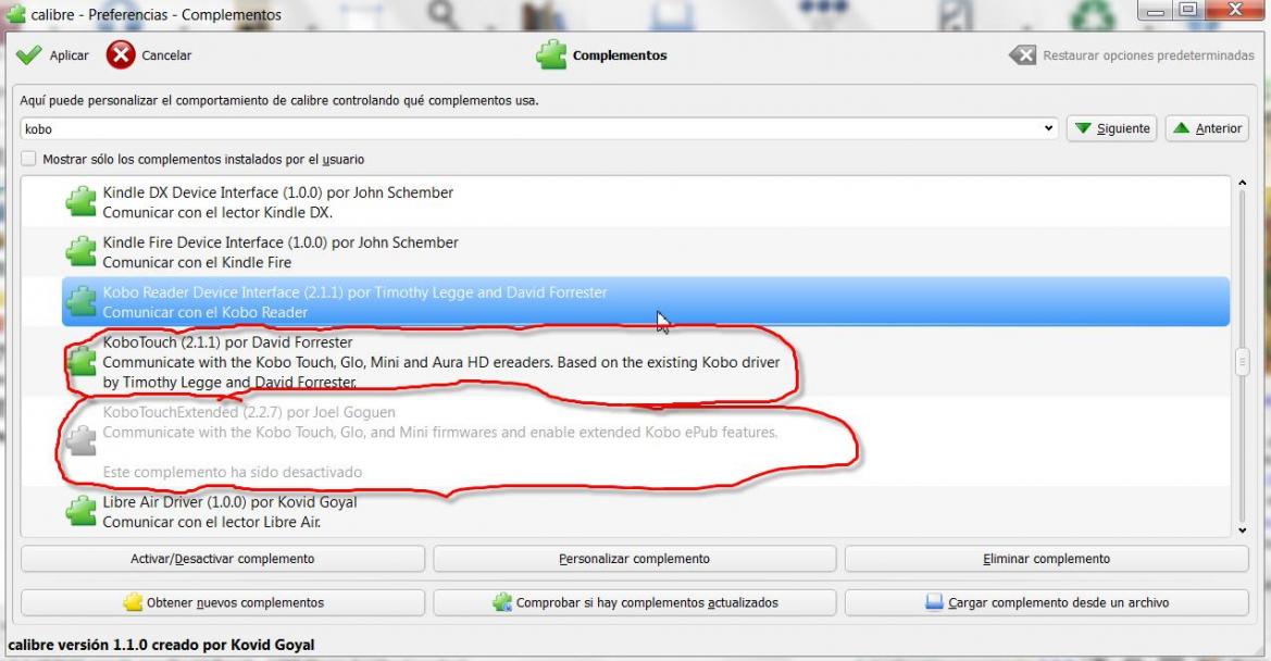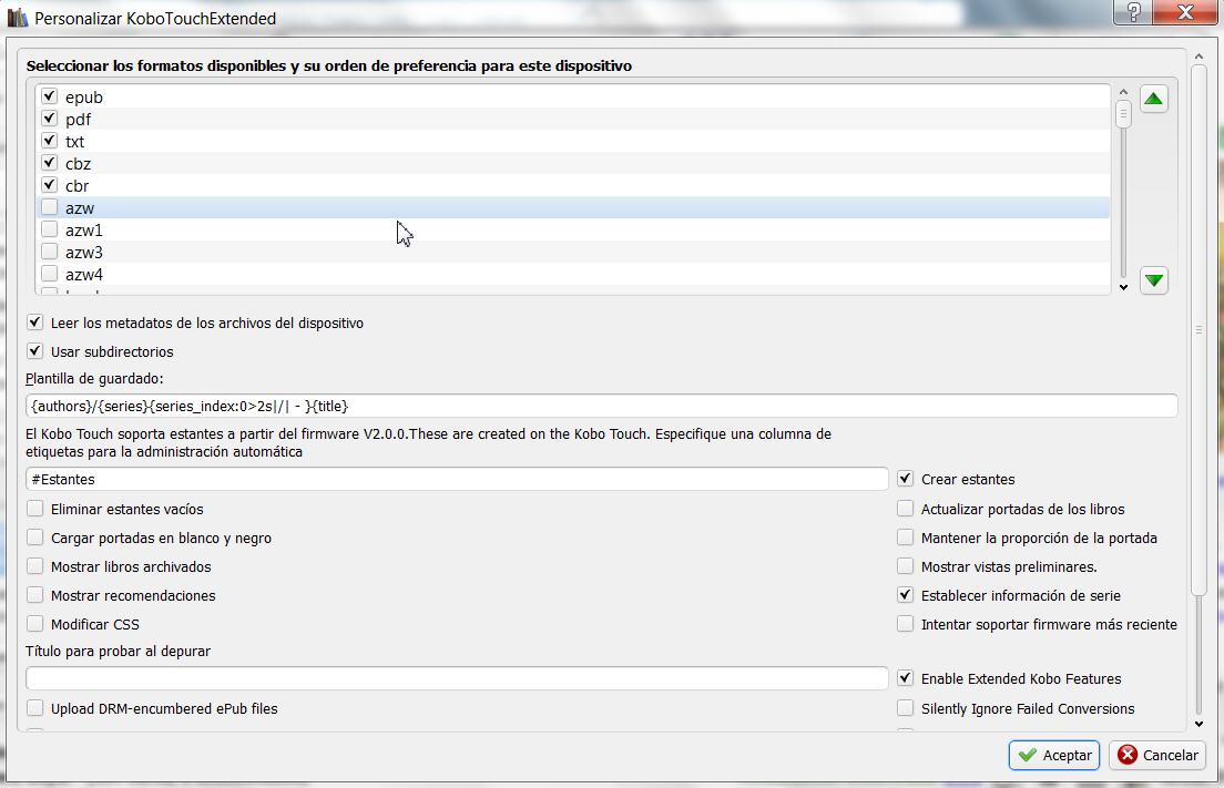 Re: Manual de instalación y uso del plugin Kobo Touch Extended para Calibre