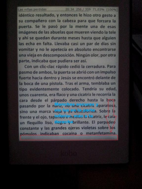 Y para concluir, sólo queda observar que sí hay lectores Kobo con luz uniforme en toda su pantalla. Me refiero a las fotos colgadas por surquizu en su web: http://aurahd.webcindario.com/accesorios.htm