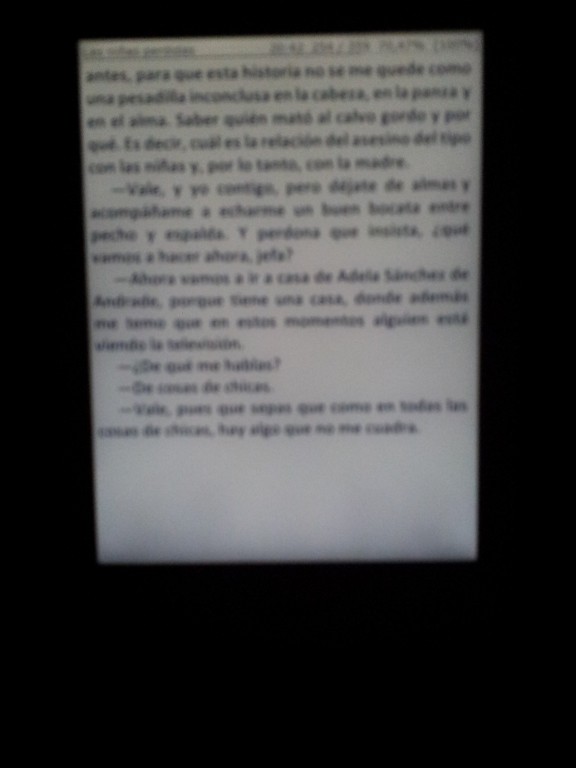 Como ya he comentado en este hilo, mi lector fenecido disponía de una luz uniforme a lo largo y ancho de su pantalla. El que tengo ahora, no. Y a mí sí me molesta, aunque de no ser así, igualmente supondría un engaño a los consumidores, que es no vender el producto que anuncian y se comprometen a vendernos. Mientras transcurren los días, observo en mi lector, como ya he dicho, unas manchas grises en la zona inferior de la pantalla. Y, curioso, pero lógico, durante el día cuando hay mucha o suficiente luz ambiental, esas manchas desaparecen porque la luz de la pantalla resulta innecesaria. De hecho, si apago la luz del lector, tampoco se ven las tan citadas manchas. Sin embargo, al ir anocheciendo y, por tanto, comenzar a disminuir el nivel de luz ambiental, vuelven a aparecer -las manchas-. O sea, que a medida que vamos necesitando más de esa mejora técnica que representa la pantalla con luz, más se aprecia su defecto en mi lector, que es que en la parte inferior hay un número de fuentes de luz inutilizadas que provocan sombras en la página que se está reproduciendo n la pantalla.