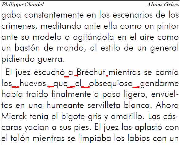 - Me he bajado uno de tus pdf "perfectos". Ahora lo entiendo todo, tu percepción de la perfección es mímima. >:)Mírate la captura de pantalla y dime otra vez que tus pdf no se ven afectados por el espaciado entre carácteres. :-)) Lo dicho, el silabeo es incompatible con la justificación y solo se le aproxima dignamente si la letra es pequeña.