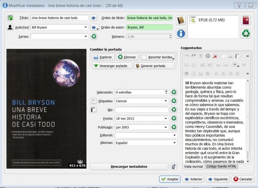 Veo que estais entretenidos con los metadatos y demas, espero que lo consigais, yo de momento no miro sincronizar con calibre ya que lo configuro desde el lector, es un poco mas rollo pero ya es costumbre y de momento me centro en otras cosas.